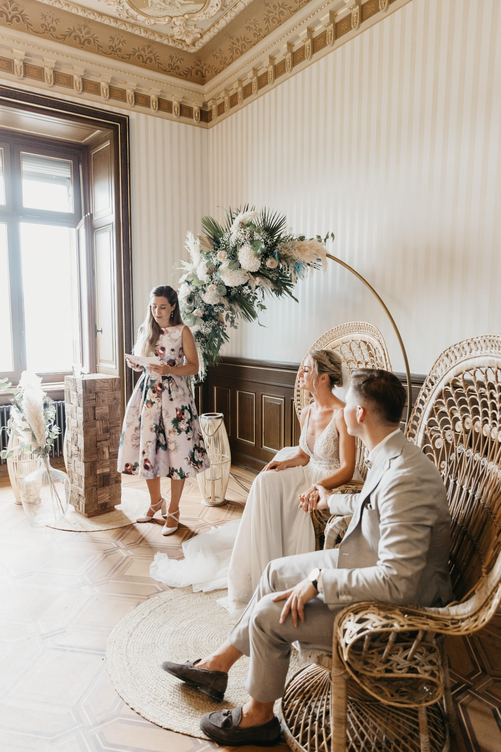 Parallel zur Ausarbeitung der Rede werde ich alle kontaktieren, die für den reibungslosen Ablauf der Trauung wichtig sind. Dazu gehören die Trauzeugen, die Location, die MusikerInnen – ich habe die Fäden in der Hand und treffe alle notwendigen Abklärungen.