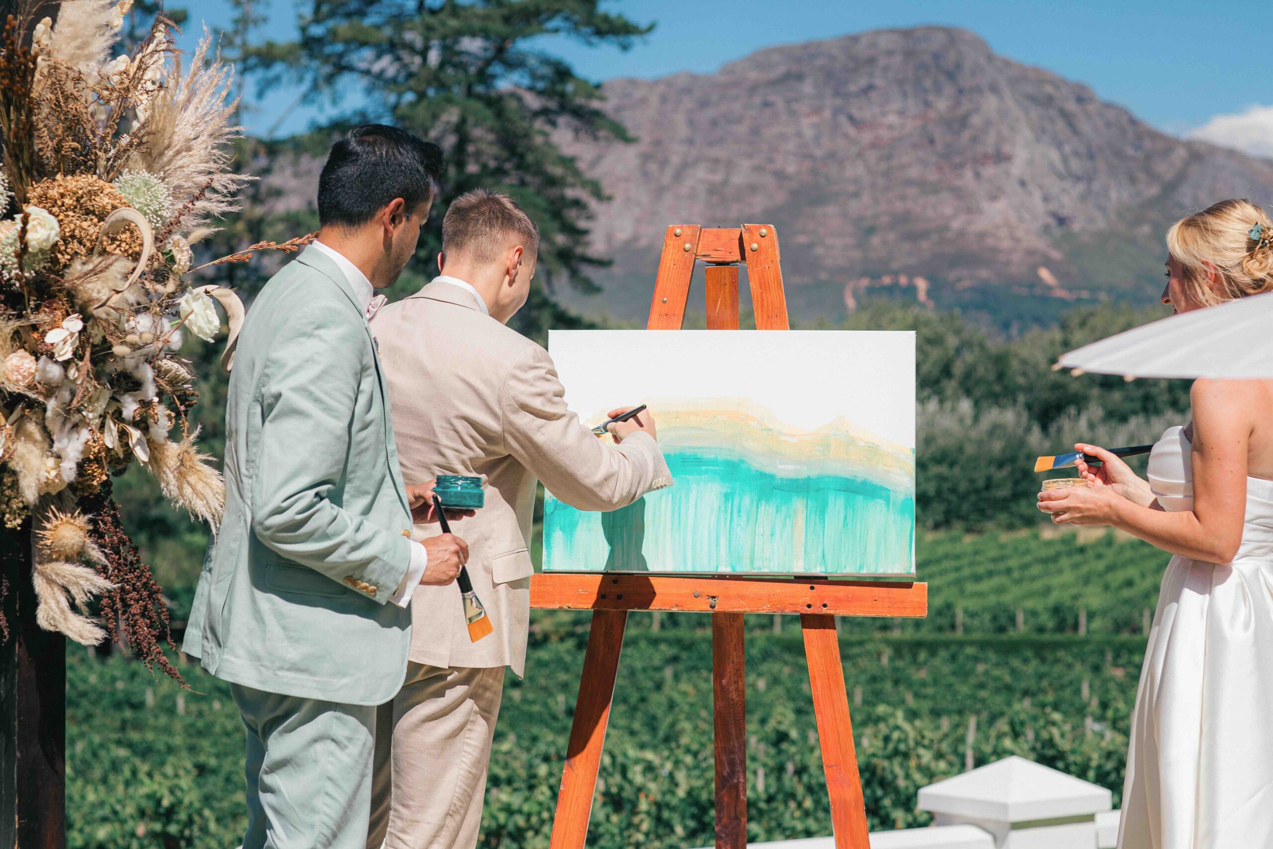 Eine Hochzeit mit so viel Herz und Emotionen! Miriam und Nico aus München hatten sich dafür entschieden, sich im südafrikanischen Sommer das Ja-Wort zu geben – und dieses mit einem ganz speziellen Ritual zu besiegeln, nämlich gemeinsam ein Bild zu malen. Es war einmalig!